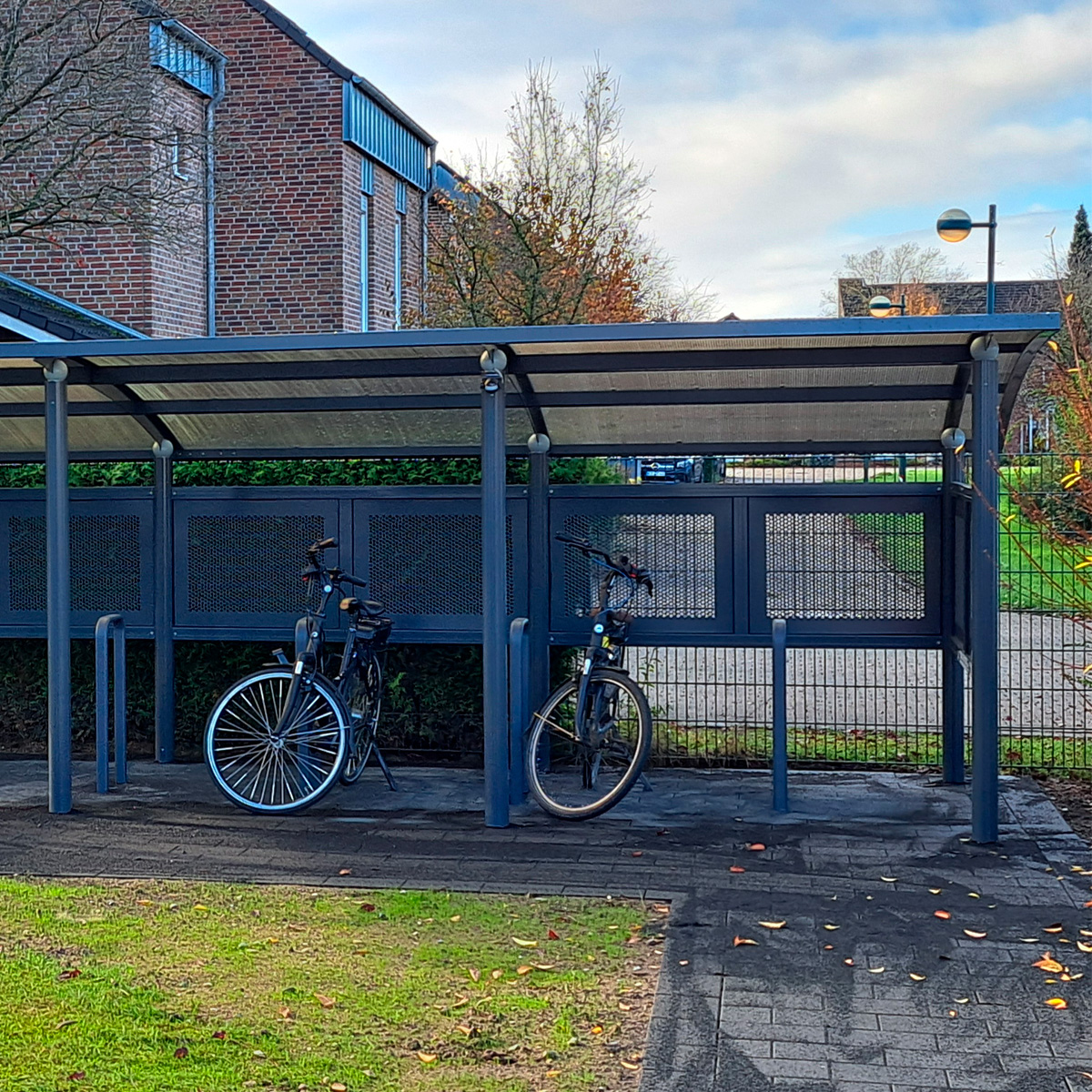 Der Fahrradunterstand ist in einer Standardausführung erhältlich, die je nach Bedarf mit unterschiedlichen Optionen angepasst werden kann. Die Optionen müssen zusammen mit dem Fahrradunterstand bestellt werden.