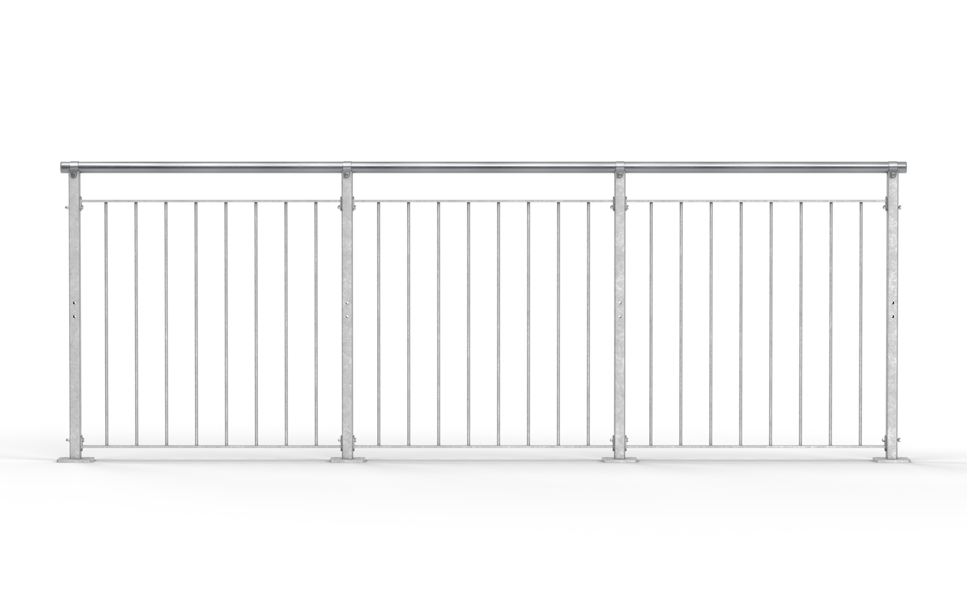 Handläufe Durchmesser Ø 42 mm erhalten eine metallische Zinkbeschichtung ZM310 als Korrosionsschutz und mit Klemmen befestigt.