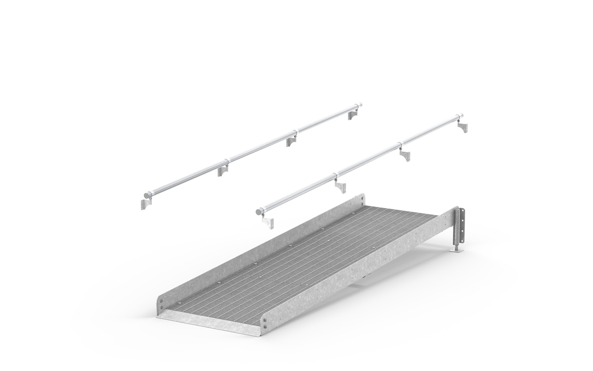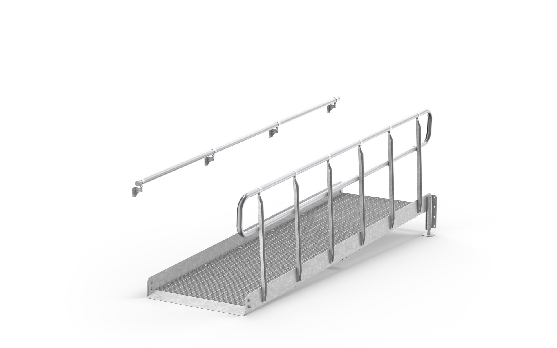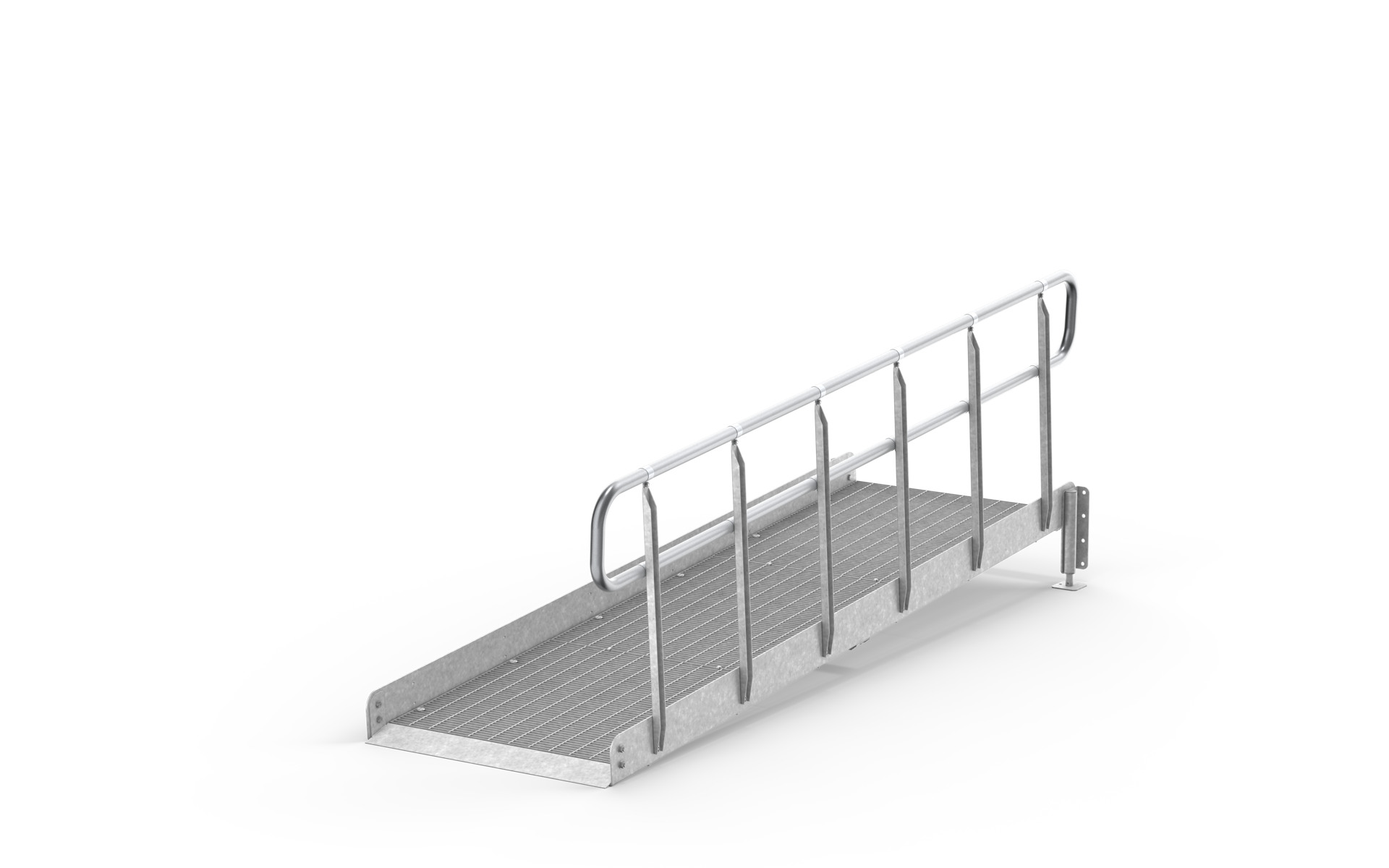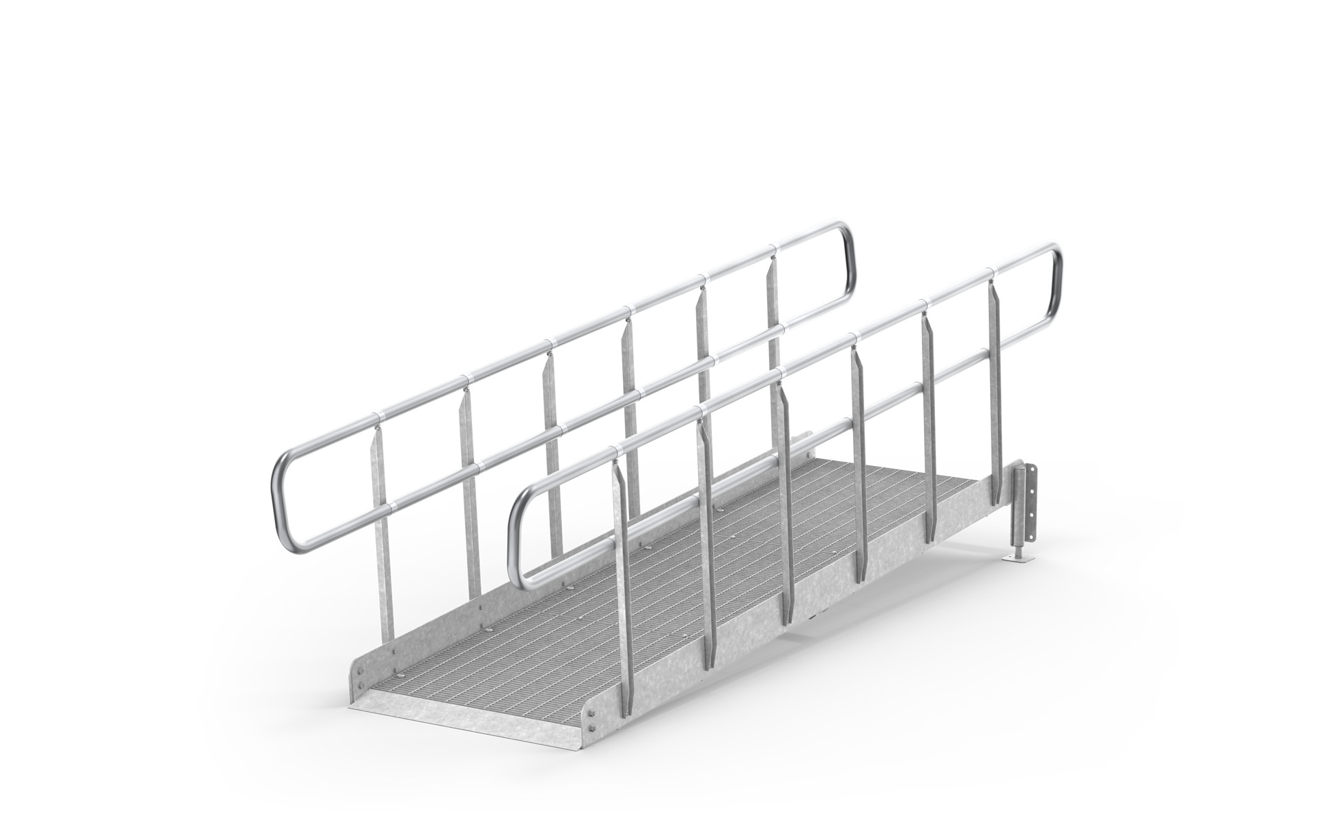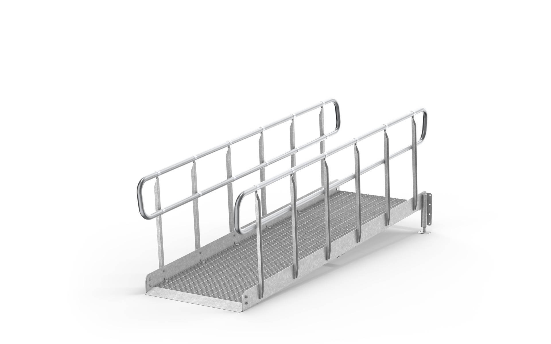 Unsere kompletten Rampen werden aus Gitterrosten inklusive Geländer, Wangen und erforderlichen Stützbeinen hergestellt. Sie basieren auf einer einfachen und robusten Konstruktion aus feuerverzinktem Stahl, die zur Stabilität und langer Haltbarkeit beiträgt. Da wir unsere Standardkomponenten auf Lager führen, können wir kurze Lieferzeiten gewährleisten.