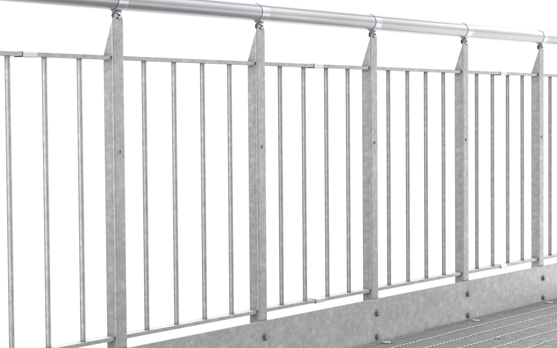 Ein lagergeführtes Standardgeländer mit Pfosten c/c 500 mm.